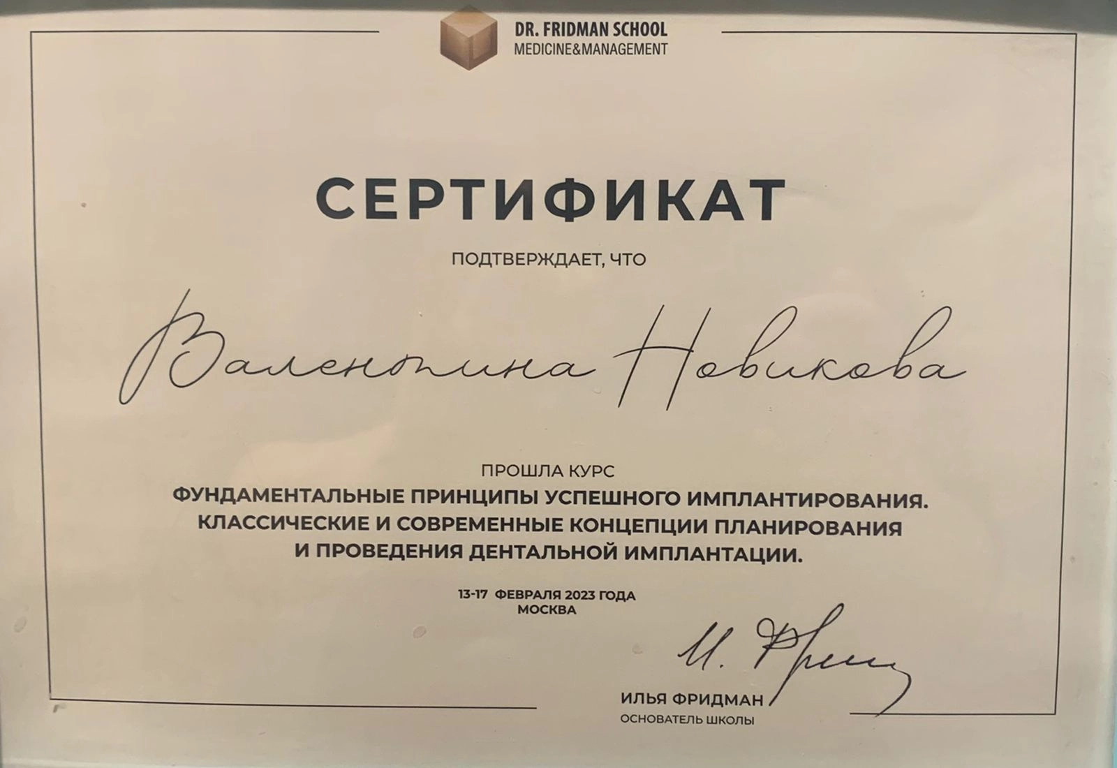 ✓прошла практический курс «Фундаментальные принципы успешного имплантирования. Классические и современные концепции планирования и проведения дентальной имплантации» (Dr.Fridman School)