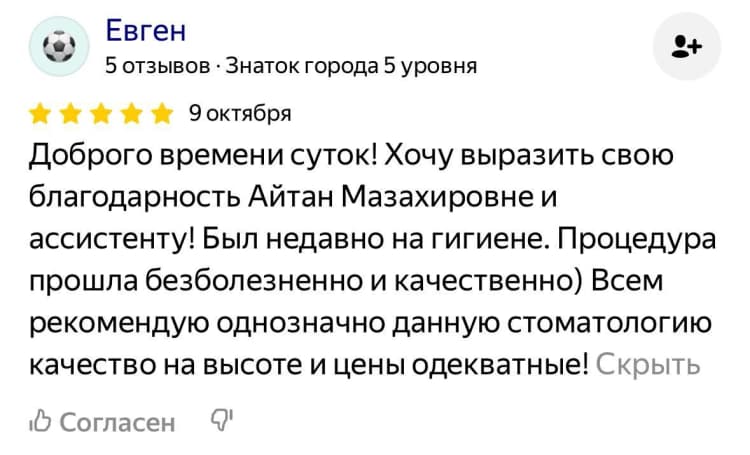 Доброжелательный, внимательный подход к пациенту, объяснение плана лечения и этапов работы.