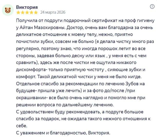 Стоматология для меня — призвание: я получаю удовольствие от творческой стороны профессии, тщательно подбираю материалы и технику для достижения высокого качества и долговечного результата, а индивидуальный подход к пациенту и внимательное обсуждение плана лечения помогают достигать эстетической и функциональной гармонии. Постоянно повышаю квалификацию на профильных курсах и мастер‑классах, стремлюсь к совершенствованию навыков и соблюдаю строгие стандарты стерильности и безопасности