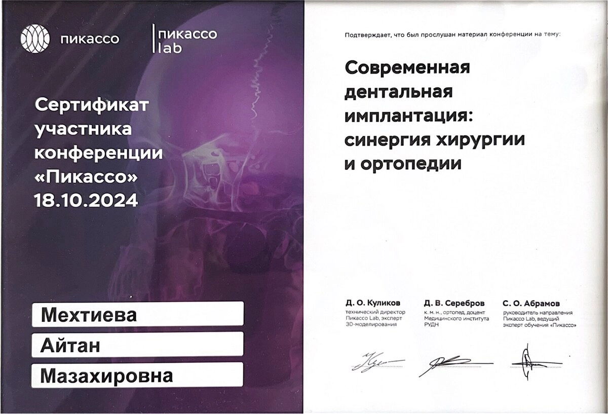 ✓Приняла участие в конференции «Современная имплантация: синергия хирургии и ортопедии» - Пикассо