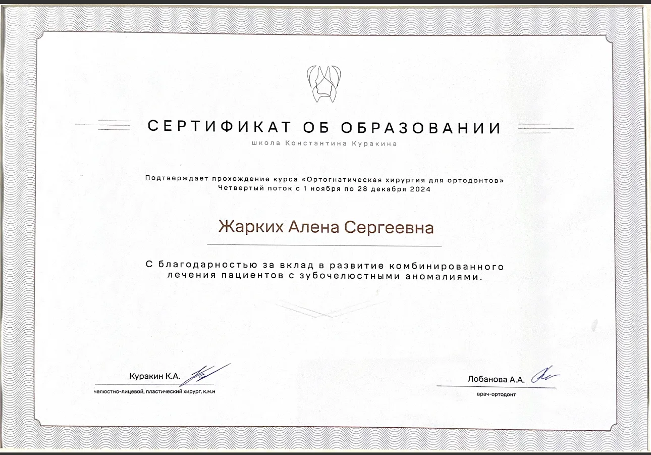 ✓пройден курс «Отодонтическая хирургия для ортодонтов» (школа Константина Куракина)